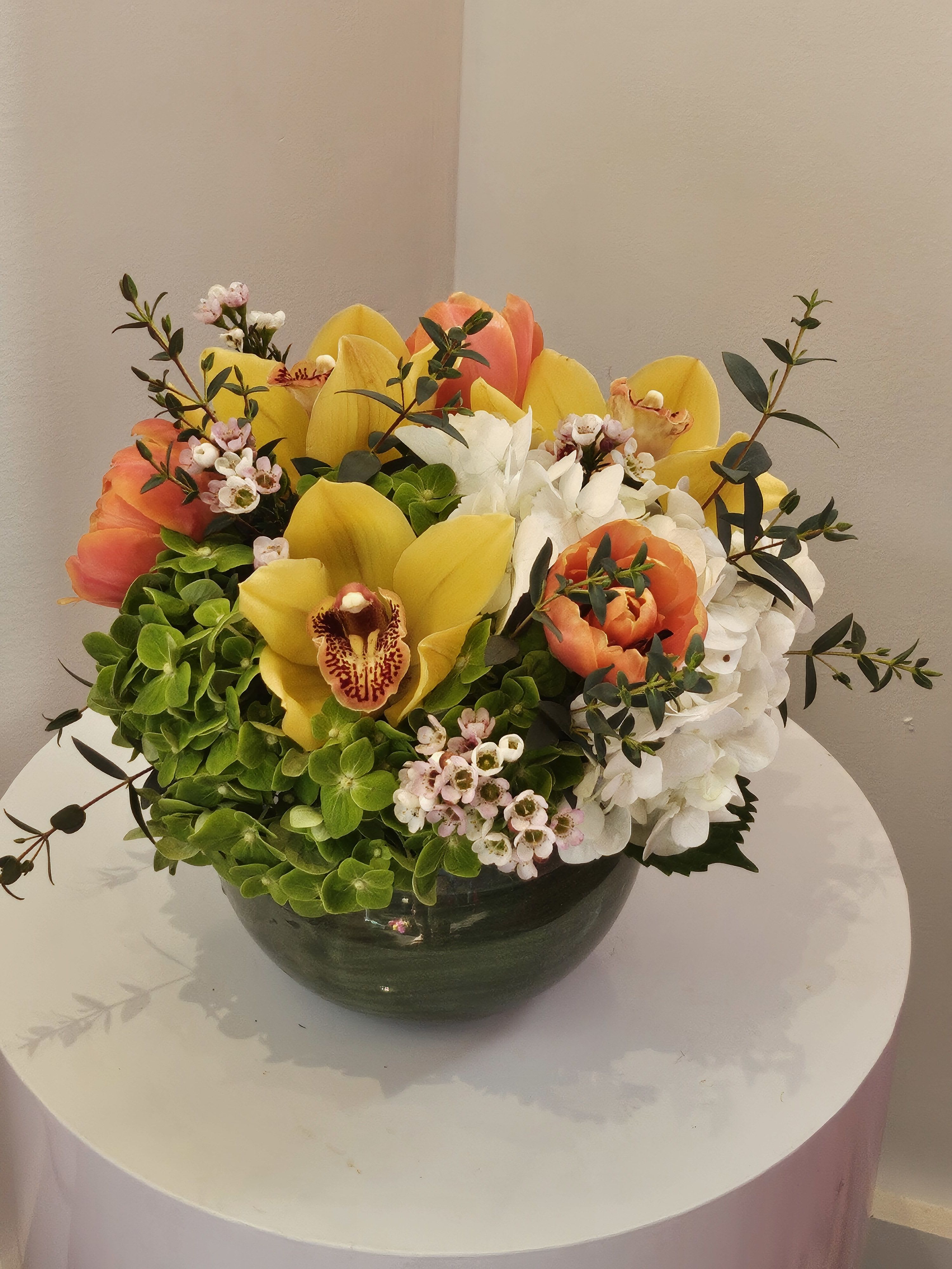 While availability of blooms like roses, lilies, orchids, and seasonal flowers may vary, every arrangement is handcrafted with attention to detail to ensure beauty, freshness, and comfort for the occasion.